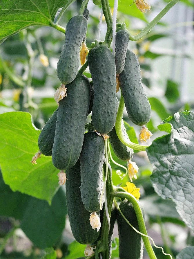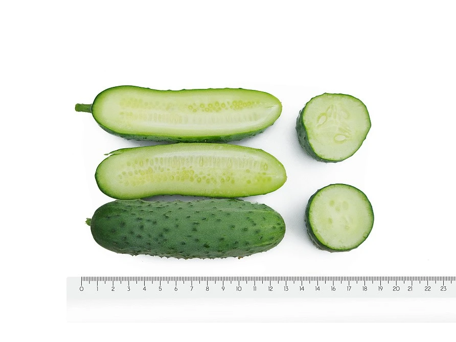Высокоурожайный раннеспелый партенокарпический гибрид огурца женского типа цветения. В плодоношение вступает на 40-44-й день с момента всходов. Растение с укороченными междоузлиями, индетерминантного типа роста, достаточно компактное, слабоветвистое. Зеленцы укороченные, цилиндрической формы с округлой вершиной, среднебугорчатые, с белым опушением, длиной 9-12 см, массой 50-80 г. В каждой пазухе листа закладывается по 2-3 одновременно развивающихся завязи. Зеленцы долго не перерастают, сохраняя свои вкусовые и товарные качества на высоком уровне. Мякоть плодов хрустящая, сочная, плотная, ароматная, без пустот и без горечи. Вкусовые качества огурчиков великолепные. Плоды отлично подходят для разного вида консервации, для потребления в свежем виде и для приготовления салатов. Гибрид устойчив к вирусам огуречной (CMV) и желтой мозаики (ZYMV), кладоспориозу (Ссu), а также толерантен к перепадам температур. Плотность посадки – 3 растения/м². Урожайность – более 17,0 кг/м².