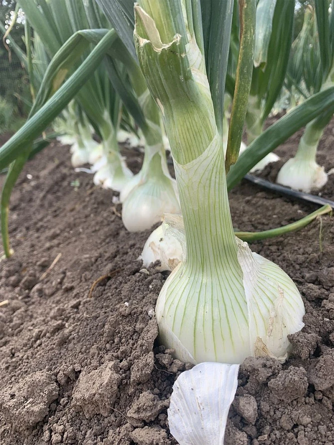 Среднеспелый высокоурожайный гибрид. Урожай готов к сбору через 115-120 дней после всходов семян. Луковицы имеют красивую округлую форму. Верхние чешуйки белоснежные, тонкие, но прочные; внутренние – толстые, сочные, белые, с приятным слабоострым вкусом. Лук отлично подходит для свежего потребления, а также всех видов переработки. Гибрид отличается высоким содержанием сахаров – свыше 8%. Масса луковиц – около 100-150 г, однако при правильном уходе и хороших подкормках может достигать 200-300 г. Гибрид прекрасно хранится до полугода, высоко толерантен к розовой гнили (Pht) и фузариозу (Foc). Урожайность – более 5,0 кг/м².