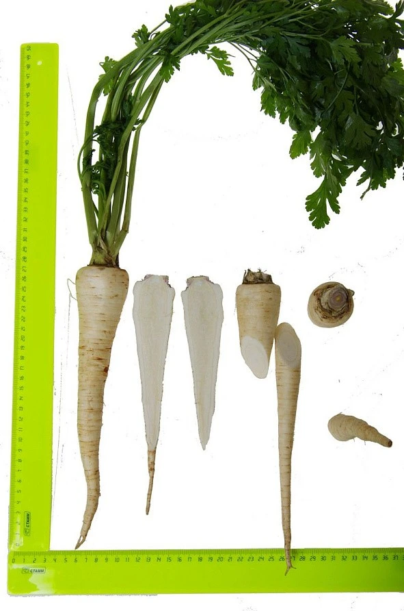 Позднеспелый сорт. От посева семян до технической спелости 180 дней. Листовая розетка полуприподнятая. Лист зеленый, блестящий. Корнеплод удлиненно-конической формы, длиной 20-25 см, шириной 6-8 см, белый. Поверхность корнеплода гладкая, без боковых корней, мякоть белая. Вкусовые качества хорошие. Масса 200-300 г. Корнеплод погружен в почву полностью. Лежкость корнеплодов в период зимнего хранения хорошая. Рекомендуется для использования в свежем виде и хранения. Урожайность 4-5 кг/м2
