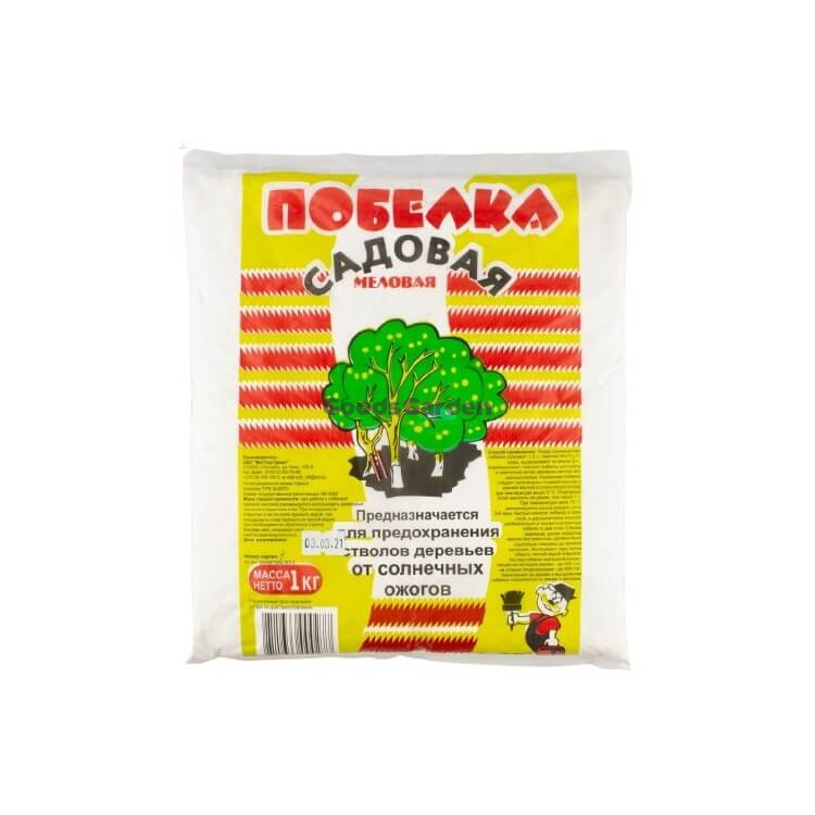Способ применения: Перед применением побелку заливают горячей водой. Расход побелки малярной консистенции на молодое дерево-до 300г./м, на старые плодоносящие-до 600г./м. Раствором следует тщательно покрывать ствол и основания суков. Нанесение побелки следует производить поздней осенью и ранней весной в сухую ясную погоду при температуре выше О градусов. Повторный слой наносится не ранее, чем через 1 час. Нанесенная на дерево и высушенная побелка сохраняется не менее 3 месяцев.